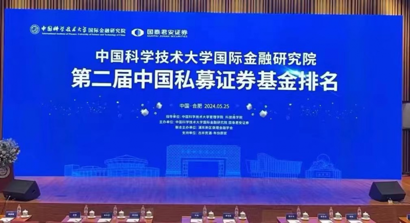 5月25日,由中国科技大学国际金融研究院、管理学院、科技商学院及国泰君安证券联合主办,上海市浦东新区数理金融学会协办的第二届“中国科大国际金融研究院·私募证券基金排名”发布活动在中国科技大学国际金融研究院学院报告厅举办。